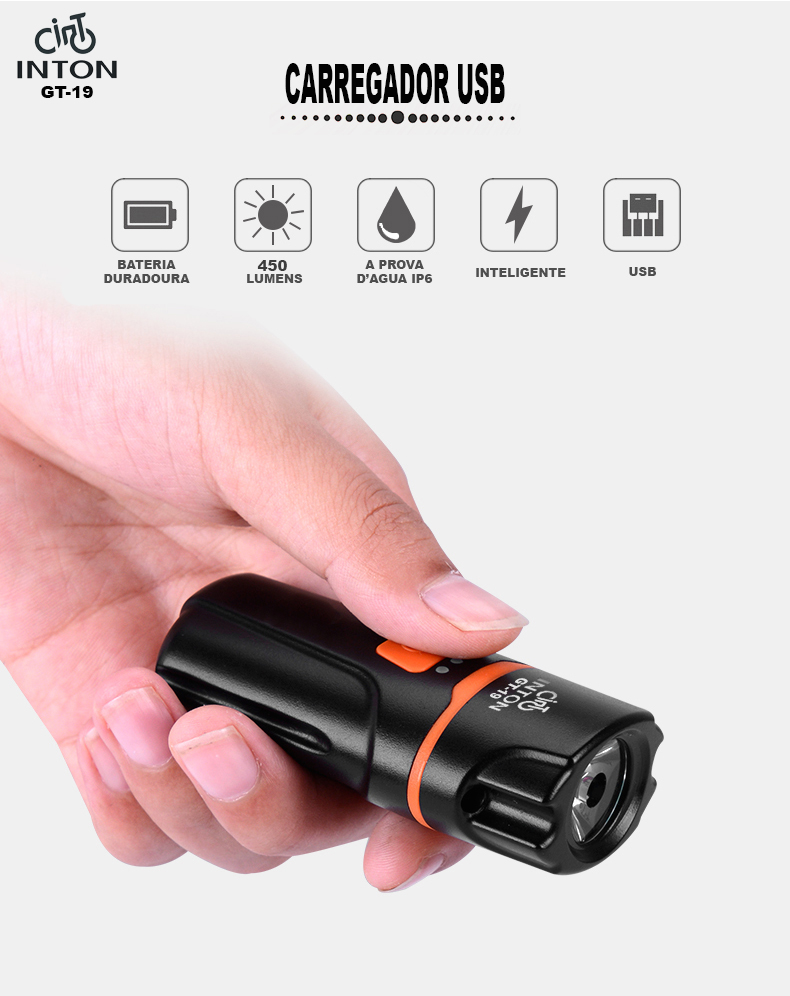 Economia de energia: Modo de luz alta pode ser usado continuamente por 2 horas, modo de pouca luz por 10 horas