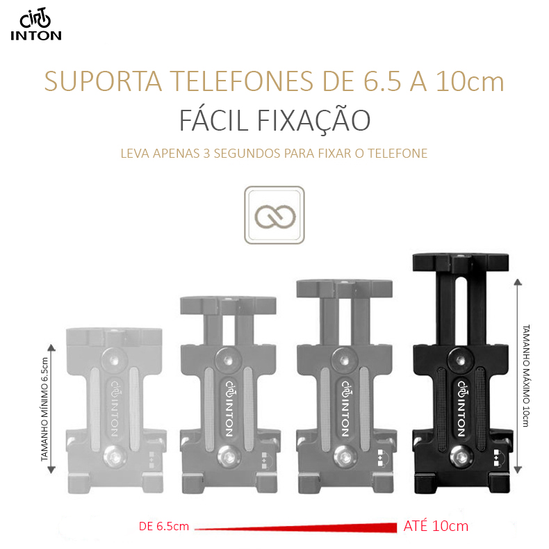 Fácil instalação, o celular pode ser colocado no superte em até 3 segundos. Para isso, basta colocar o celular no suporte e apertar a rosca localizada na parte traseira do suporte.