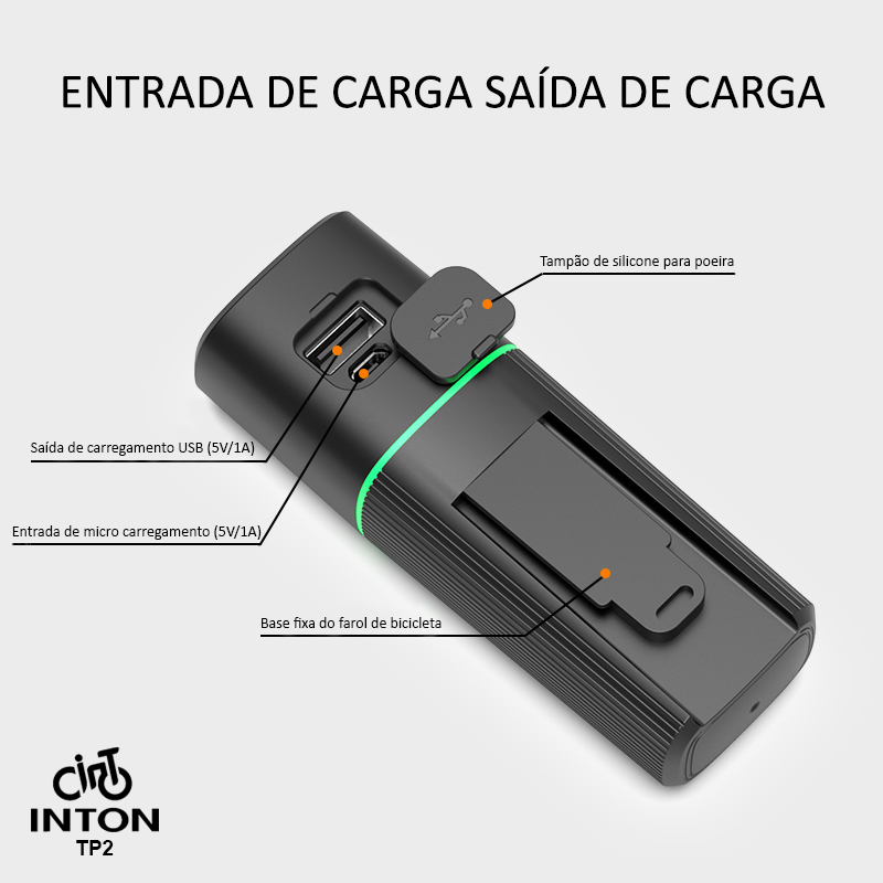 Acessórios do produto: Farol de bicicleta, suporte, cabo USB de 0,5 m, manual, caixa de cores
