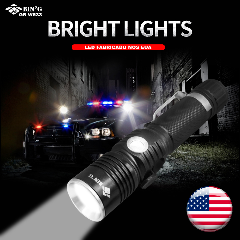 Lanterna Tatica Led Cree T6 Recarregvel Binglanternas